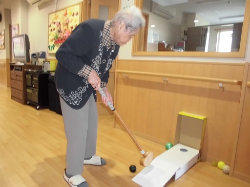 3月になり次第に暖かくなってきたので、日中の活動も外で過ごす事が多くなってきました。天気のいい日には、散歩に出かける機会も多くなり日光浴やパターゴルフを楽しまれています。